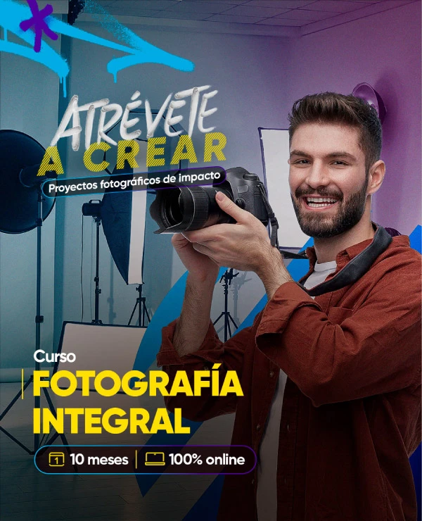 Este curso te permitirá especializarte en fotografía y aprender las técnicas de retrato, fotografía publicitaria, documental y paisajística. Asimismo, desarrollarás un estilo propio al conceptualizar y producir imágenes con un criterio estético sólido. También aprenderás a aplicar las principales herramientas de retoque y edición fotográfica en Adobe Photoshop y Lightroom. Regístrate y te contactaremos en breve.