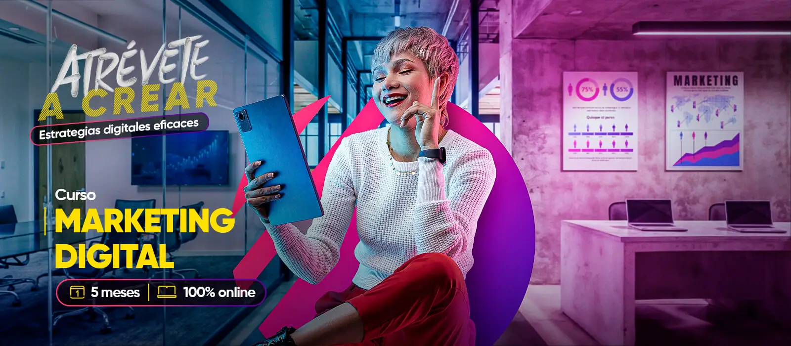 Al finalizar este curso dominarás las herramientas del marketing digital para hacer crecer un negocio, a través de estrategias de posicionamiento SEO con inteligencia artificial, implementación de publicidad digital (SEM), estrategias de marketing de contenidos en redes sociales con inteligencia artificial, implementación de campañas en Meta Ads, UX y conocimiento sobre analítica y métricas.