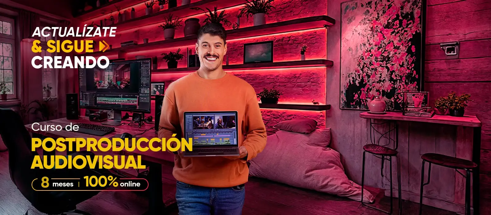 Especialízate en post-producción audiovisual profesional, integrando edición, motion graphics y VFX para resolver piezas con estándares técnicos y flujos de trabajo propios del entorno profesional.